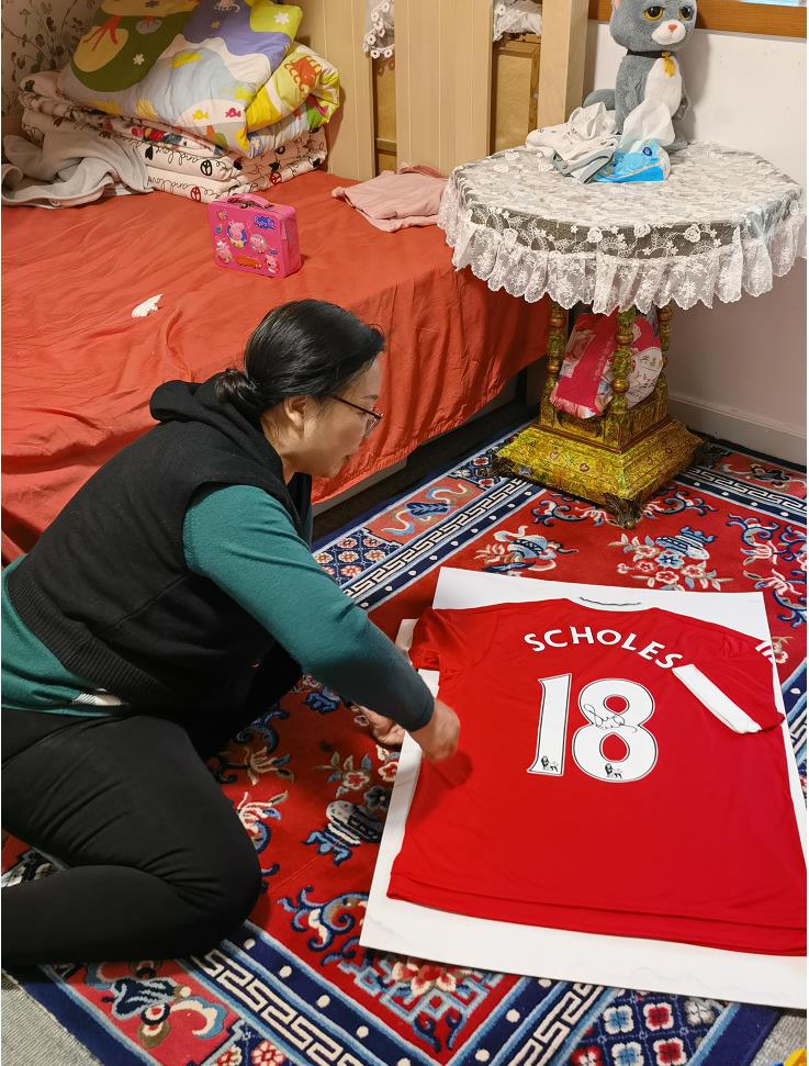 我有一件非常喜爱的签名足球球衣,已经穿穿用用很多年,但又没有想过如何处理这件愈发折旧的回忆。记得是前年的一个秋日,下班后一直未见我岳母的身影,一问一答间说在补衣服,原来她将我对那衣服的喜爱与惋惜看在眼里,自己裁了块儿纸板,找了个裱框,将衣服缝在上面裱了起来。待第二天回家看见挂在墙上的“礼物”,才突然领悟到“不一定要新的东西才是最珍贵的礼物”,我转过头对孩子也这样说到。
