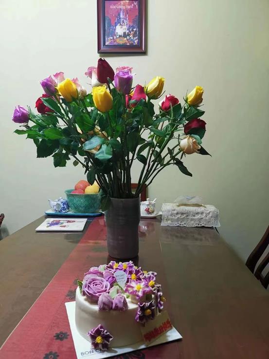 孝顺,一直是中华民族的传统美德,也是我和我先生共同的价值观。我和我先生,虽然都是各自家里的老小,但是都不约而同地承担起了照料双方老人的重任。每个节日、双方老人的每个生日,我们都会一起度过或者送上祝福。每位老人生病,我们都会跑前跑后,寻医问药。在我们的悉心照料下,我的父亲和公公走得宁静而安详,母亲几度转危为安,婆婆更是在过去10年里两次奇迹般地战胜了癌症!母亲、婆婆、亲人和邻居经常当着我们的面说,是我们的孝顺给了两位母亲第二、第三次生命。我们从来没有对孩子说“你要孝顺,将来要照顾我们”之类的话,但是我们的行动却润物细无声地影响和感染了孩子。今年5月的一天,家里突然收到了一束鲜花,和用紫色鲜花点缀的蛋糕。原来,是远在万里之外的女儿给我订的。当看到“妈妈生日快乐”这几个字的时候,我的眼眶已经湿润……