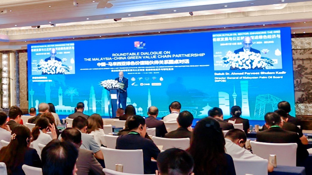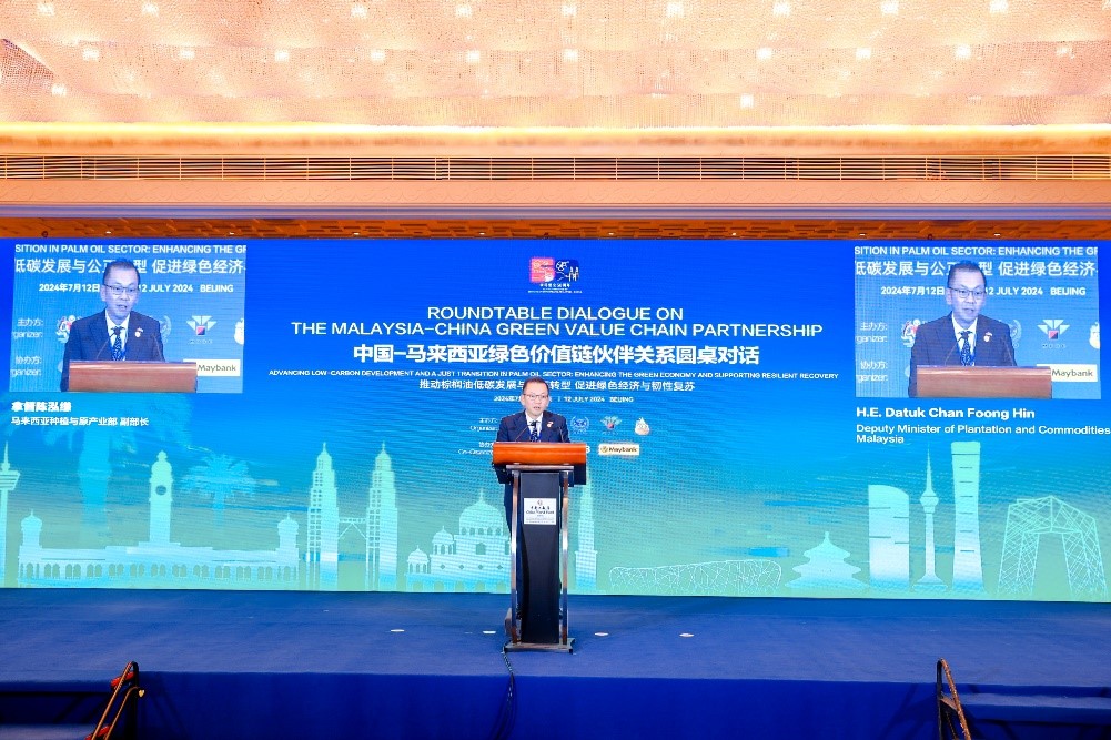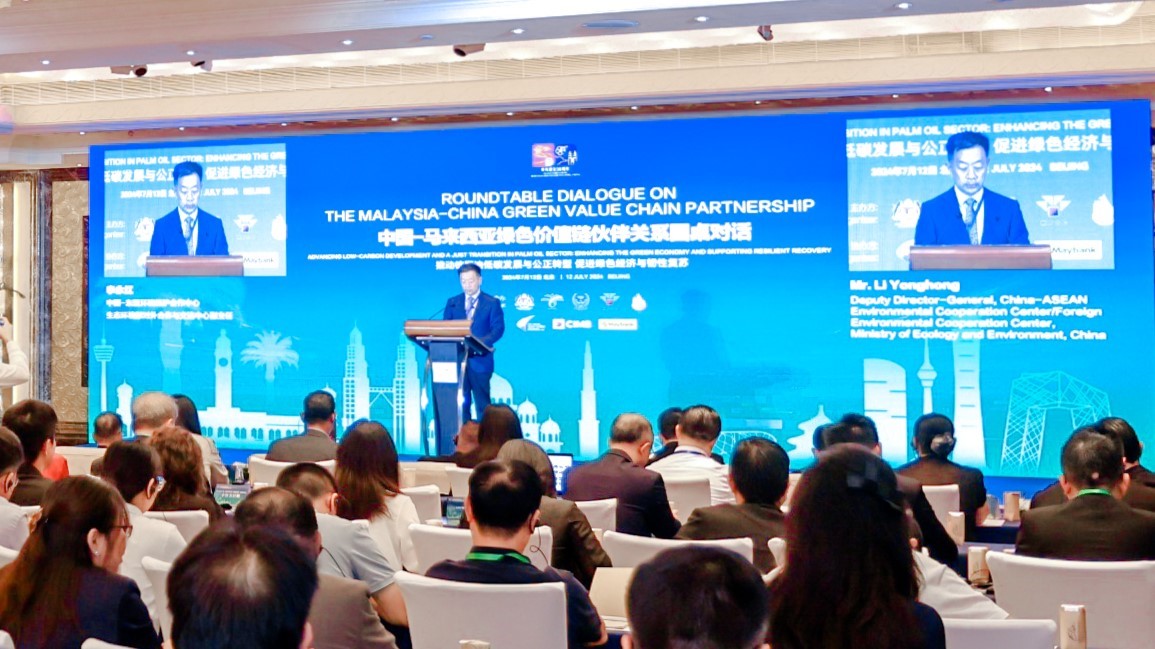 2024年7月12日,中国-马来西亚绿色价值链伙伴关系圆桌对话:推动棕榈油低碳发展与公正转型,促进绿色经济与韧性复苏在京召开。本次圆桌对话由中国-东盟环境保护合作中心/生态环境部对外合作与交流中心(以下简称中心)、马来西亚种植与原产业部、马来西亚棕榈油总署、马来西亚棕榈油认证委员会、马来西亚棕榈油委员会主办。中国与马来西亚相关政府部门、金融机构、科研智库、国际组织、私营部门等有关部门代表参加会议。