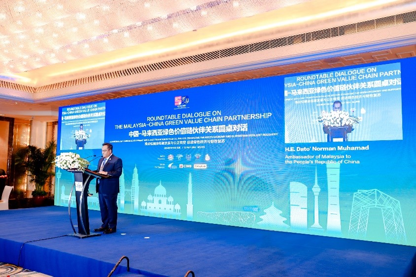 马来西亚种植与原产业部副部长拿督陈泓缣、中国-东盟环境保护合作中心/生态环境部对外合作与交流中心副主任李永红、马来西亚棕榈油总署署长拿督巴威斯、马来西亚驻华大使拿督诺曼出席会议并致开幕词。